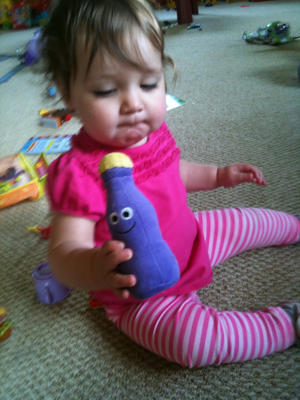 This is how Emily holds a telephone! She'll babble quite happily to whoever is on the other end.
